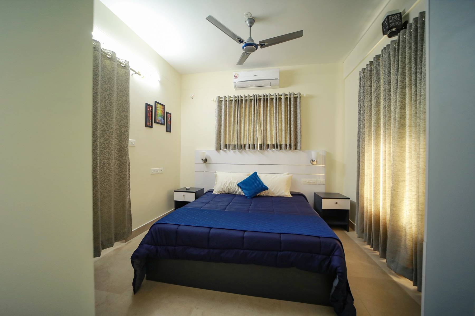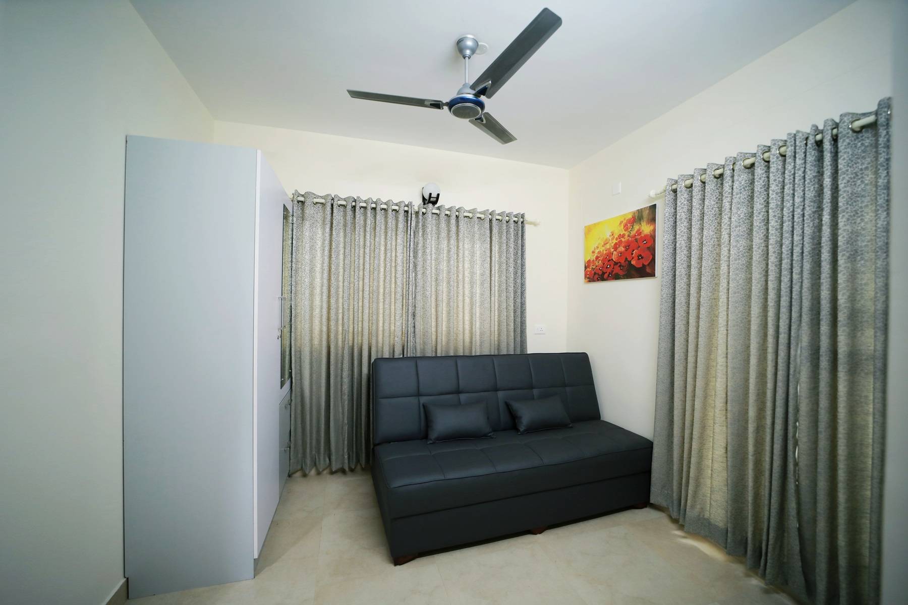 - Two private balconies and one common balcony.